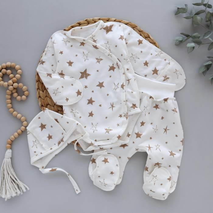 Набір 3в1: Боді, повзунки та шапочка на зав’язках Зірки (Футер - з начосом) 56 (0-1міс)