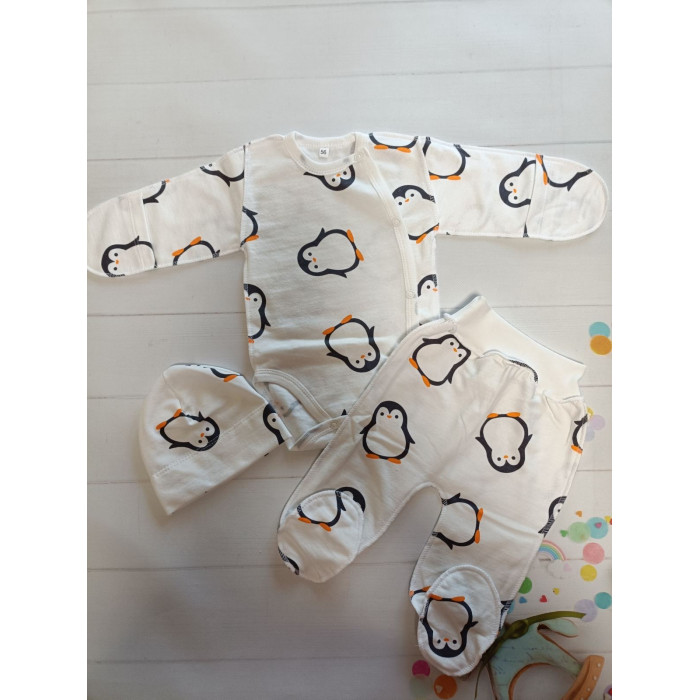 Набір 3в1: Боді, повзунки та шапочка Пінгвіни (Футер - з начосом) 56 (0-3міс)