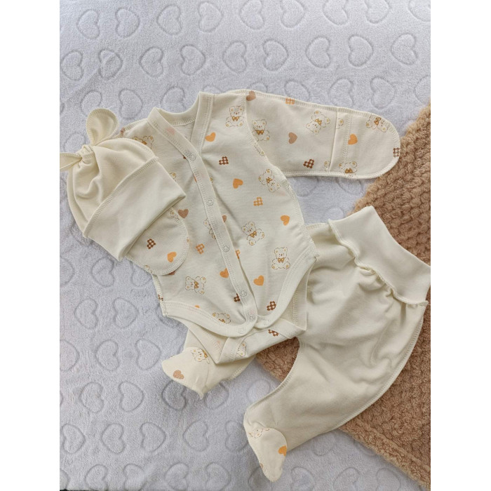 Набір 3в1: Боді, повзунки та шапочка Сердечка Ведмедик (Футер - з начосом) 56 (0-3міс)