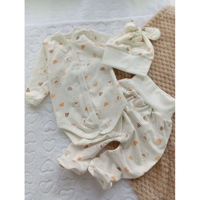 Набір 3в1: Боді, повзунки та шапочка Сердечка Ведмедик (Футер - з начосом) 62 (3-6міс)