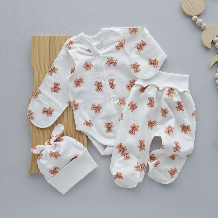 Набір 3в1: Боді, повзунки та шапочка Ведмедик плюшевий (Футер з начосом) 56 (0-3міс)