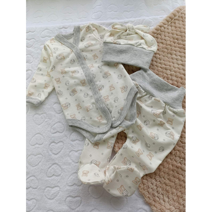 Набір 3в1: Боді, повзунки та шапочка Ведмедик зайчик (Футер - з начосом) 62 (3-6міс)