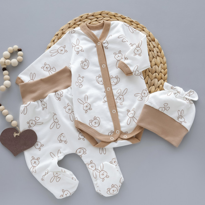 Набір 3в1: Боді, повзунки та шапочка Зайчик Бежевий (Футер - з начосом) 62 (3-6міс)