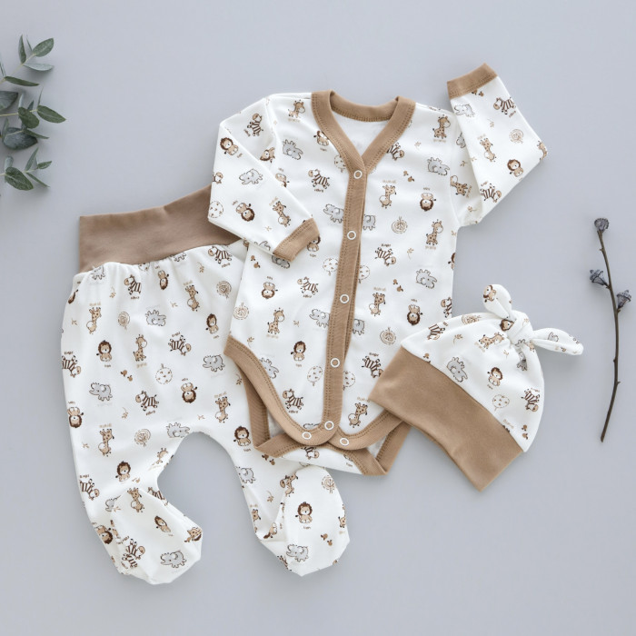 Набір 3в1: Боді, повзунки та шапочка Звірята Бежевий (Інтерлок) 62 (3-6міс)