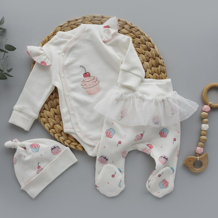 Набір 3в1: Боді, повзунки з фатіном та шапочка Тістечка (Футер - з начосом) 56 (0-3міс)
