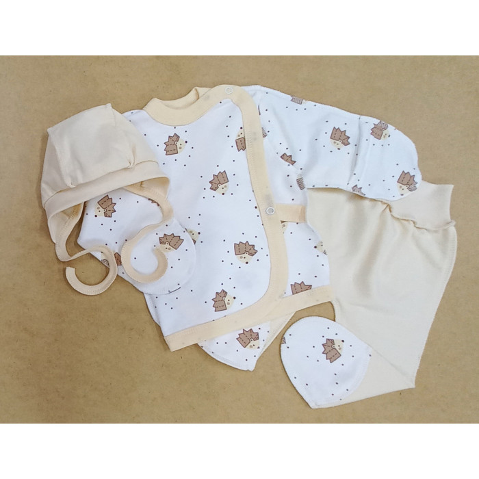 Набір 3в1: Льоля, повзунки та шапочка Їжачки Бежевий (Футер - з начосом) 56 (0-3міс)