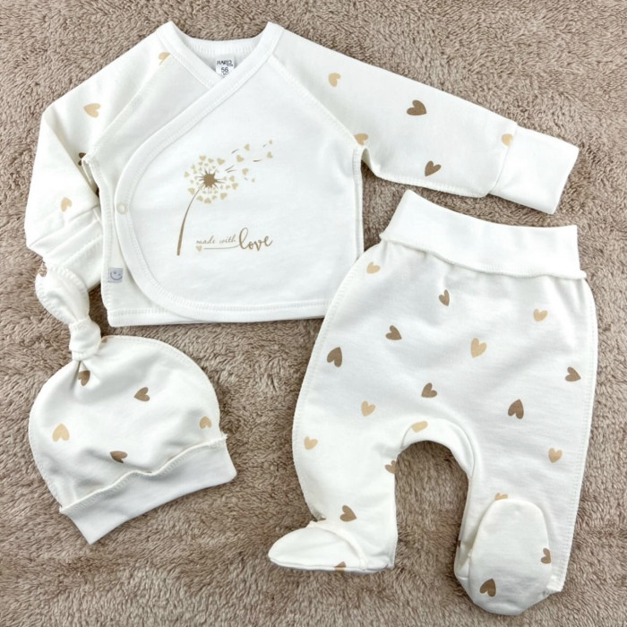 Набір 3в1: Льоля, повзунки та шапочка Кульбаба Сердечка (Футер - з начосом) 56 (0-3міс)