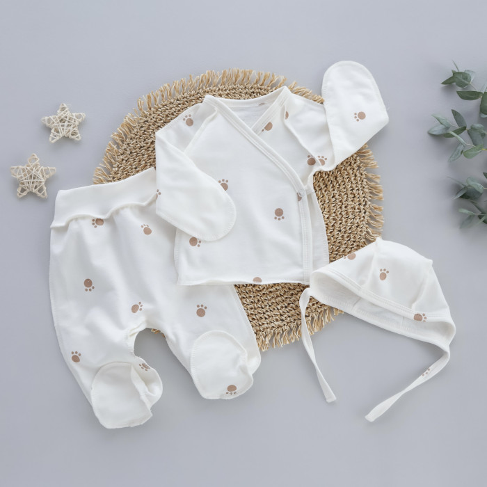Набір 3в1: Льоля, повзунки та шапочка на зав’язках Лапки (Футер - з начосом) 56 (0-1міс)