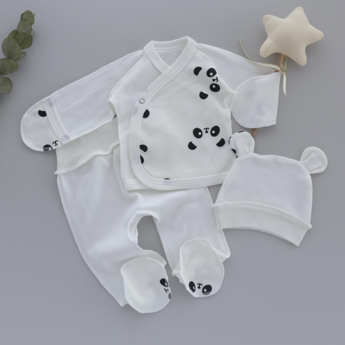 Набір 3в1: Льоля, повзунки та шапочка Панди Молочний (Футер - з начосом) 56 (0-3міс)