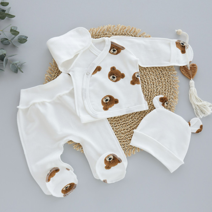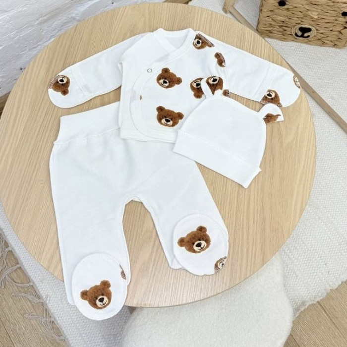 Набір 3в1: Льоля, повзунки та шапочка Ведмедики Мордочки (Футер - з начосом) 56 (0-3міс)