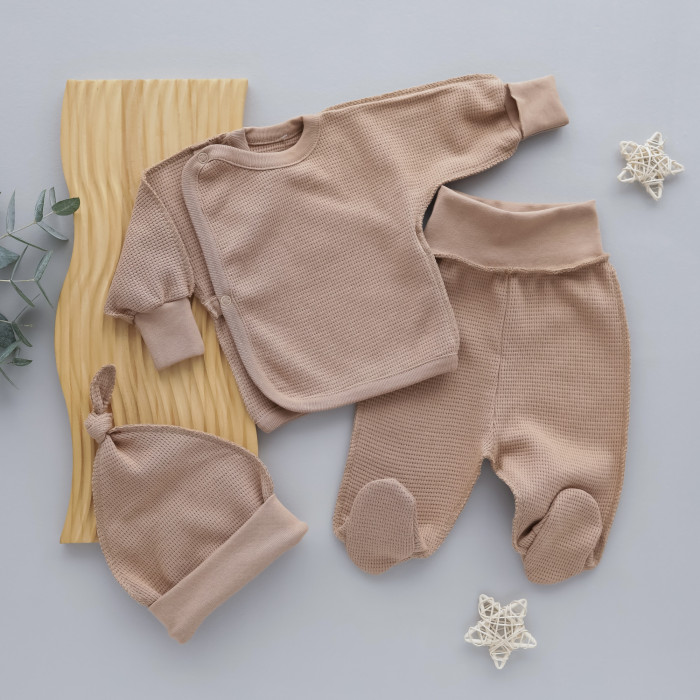 Набір 3в1: Льоля, повзунки та шапочка вузлик Бежевий (Вафелька) 50 (newborn)