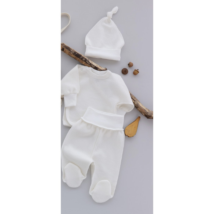 Набір 3в1: Льоля, повзунки та шапочка вузлик Молочний (Вафелька) 56 (0-3міс)