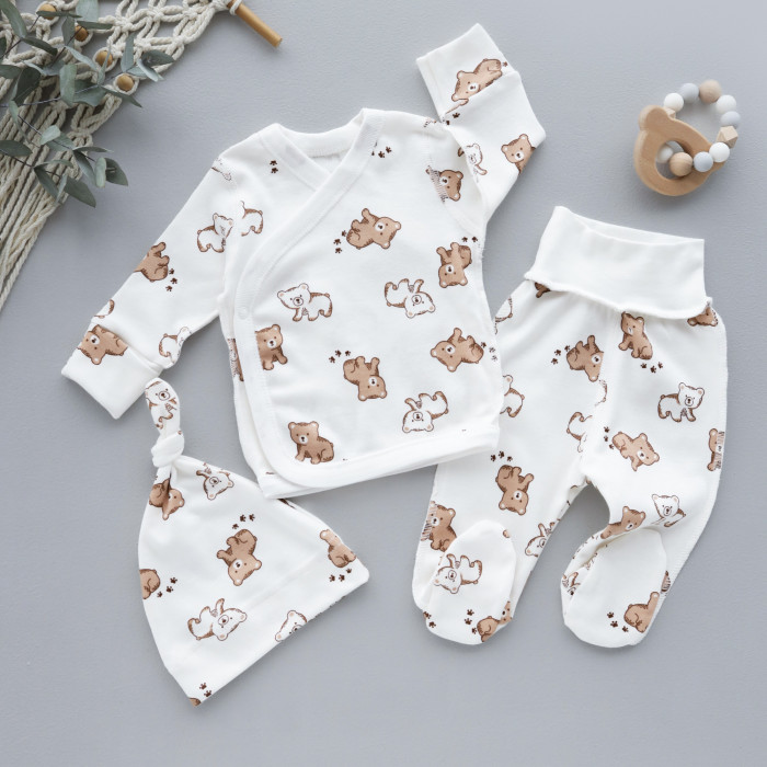 Набір 3в1: Льоля, повзунки та шапочка вузлик Ведмедик Коричневий (Інтерлок) 56 (0-3міс)