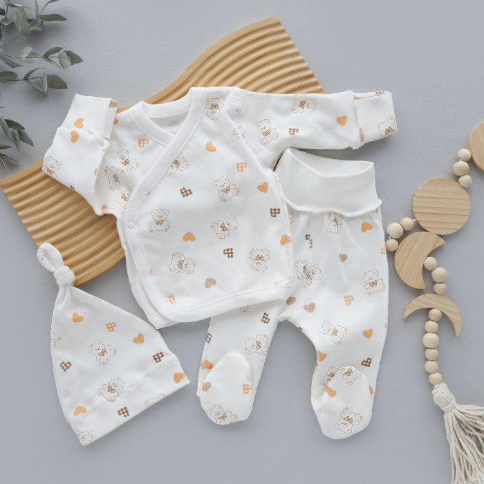 Набір 3в1: Льоля, повзунки та шапочка вузлик Ведмедик Сердечка (Інтерлок) 56 (0-3міс)