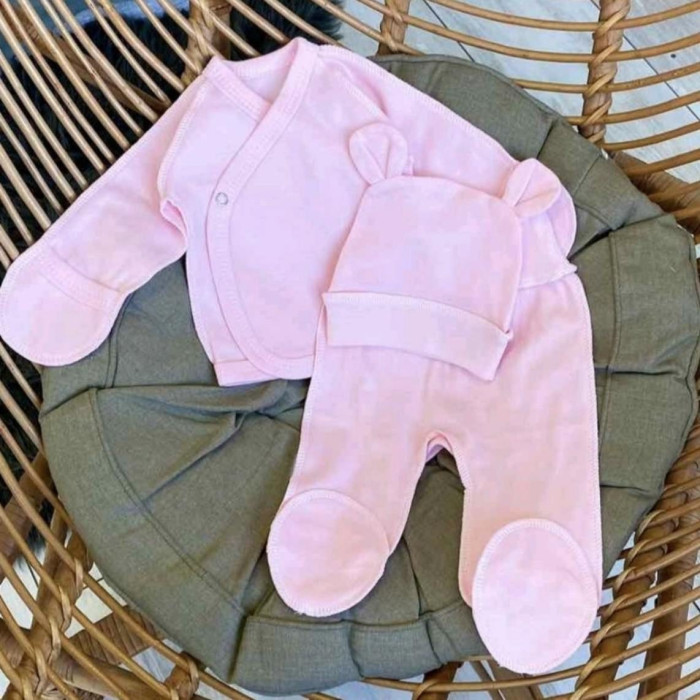 Набір 3в1: Льоля, повзунки та шапочка з вушками Рожевий (Інтерлок) 62 (3-6міс)