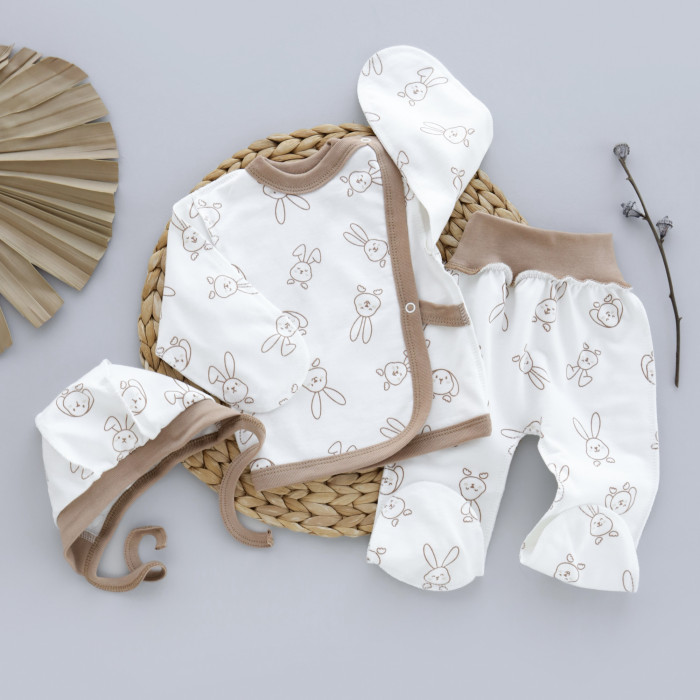 Набір 3в1: Льоля, повзунки та шапочка Зайчики Бежевий (Футер - з начосом) 56 (0-3міс)
