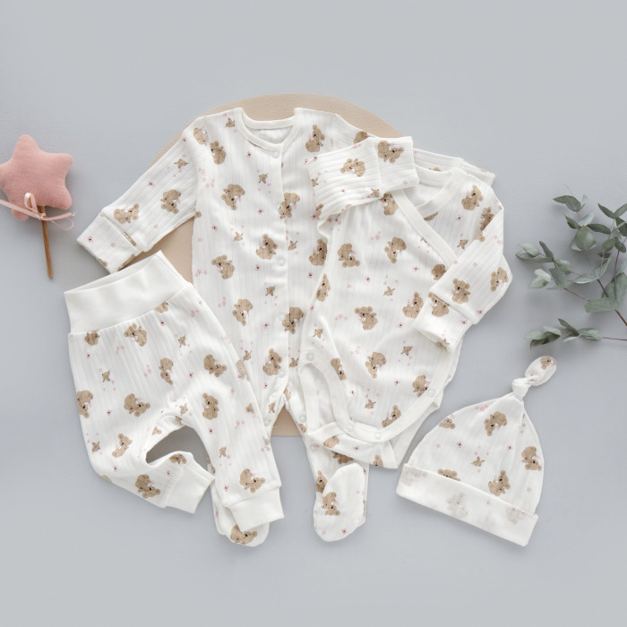 Набір 4в1: Чоловічок, боді, повзунки та шапочка вузлик Коала Рожевий (Рубчик) 62 (3-6міс)