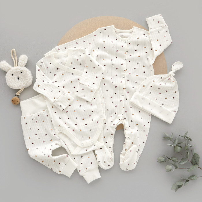 Набір 4в1: Чоловічок, боді, штанці та шапочка вузлик Седечка дрібні Фіолетовий (Рубчик) 62 (3-6міс)