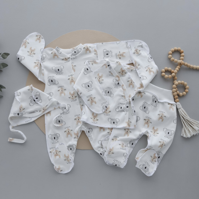 Набір 4в1: Чоловічок, льоля, повзунки та шапочка на зав’язках Коала Зайчики (Інтерлок) 56 (0-1міс)
