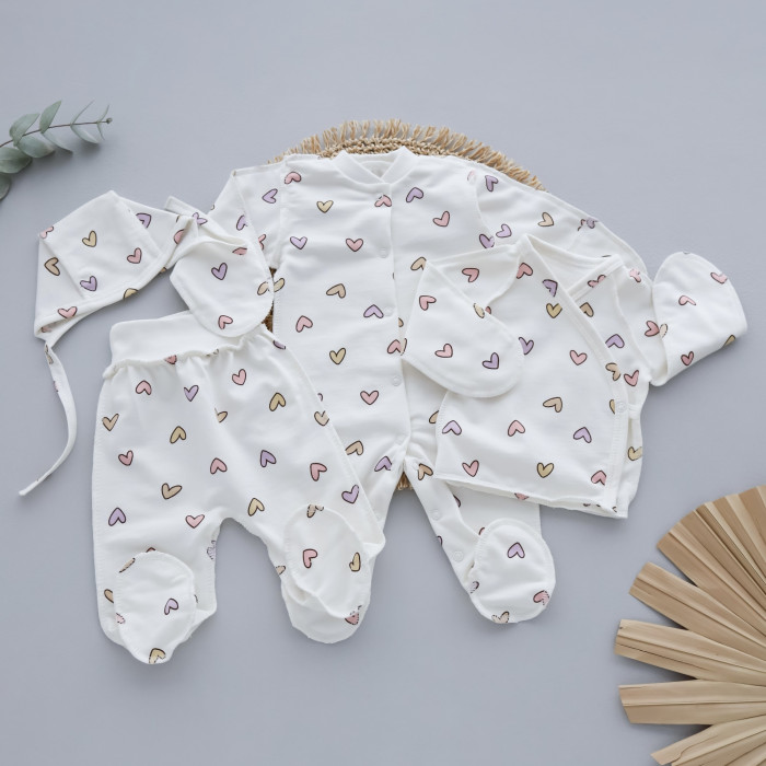 Набір 4в1: Чоловічок, льоля, повзунки та шапочка на зав’язках Сердечка Фіолетовий (Футер - з начосом) 62 (1-3міс)