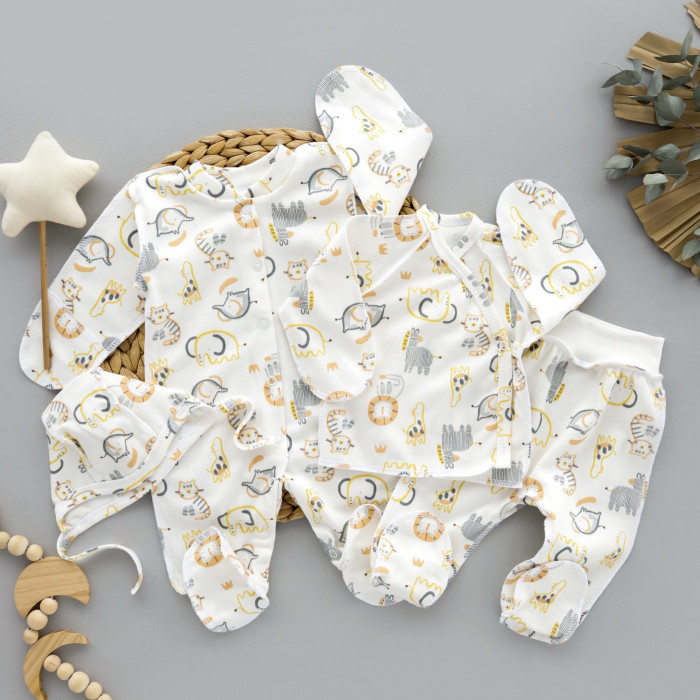 Набір 4в1: Чоловічок, льоля, повзунки та шапочка на зав’язках Звірята Сірий (Інтерлок) 56 (0-1міс)