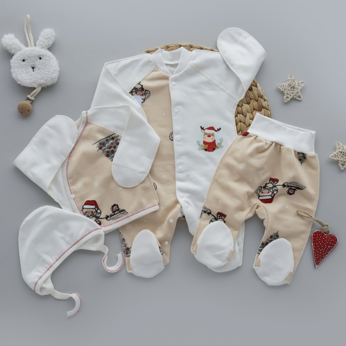 Набір 4в1: Чоловічок, льоля, повзунки та шапочка Новорічний Ялинка (Футер - з начосом) 56 (0-3міс)