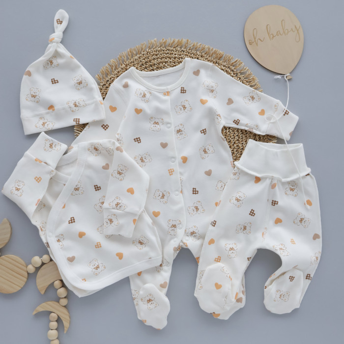 Набір 4в1: Чоловічок, льоля, повзунки та шапочка вузлик Ведмедик Сердечка (Інтерлок) 62 (3-6міс)
