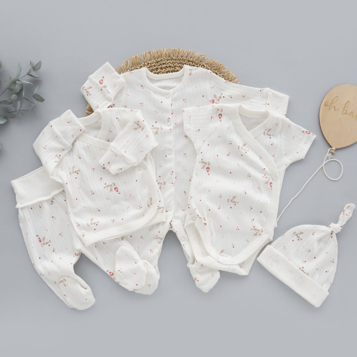Набір 5в1: Чоловічок, льоля, повзунки, боді короткий рукав та шапочка Сердечка Рожевий Je t'aime (Рубчик) 56 (0-3міс)
