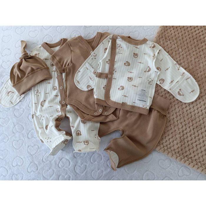 Набір 5в1: Їжачки Бежевий (Інтерлок/ Рубчик) 56 (0-3міс)