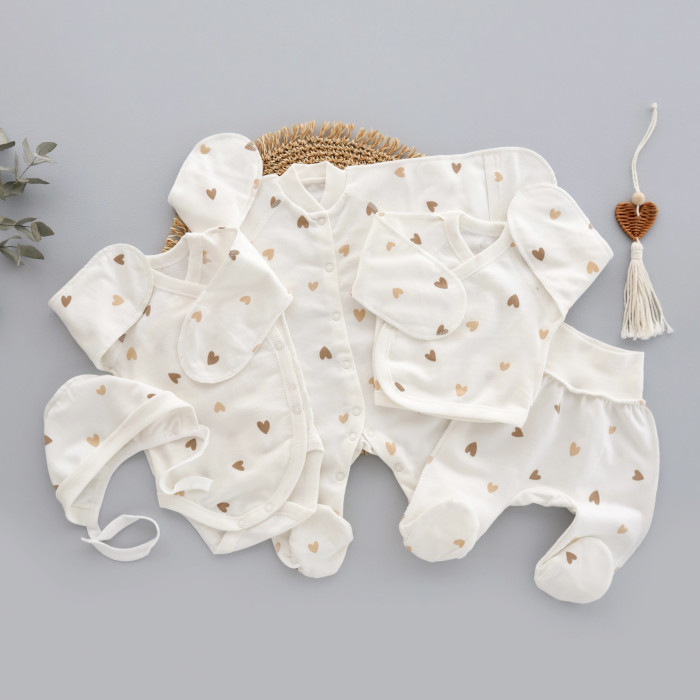 Набір 5в1 Сердечка Бежевий (Футер - з начосом) 56 (0-3міс)