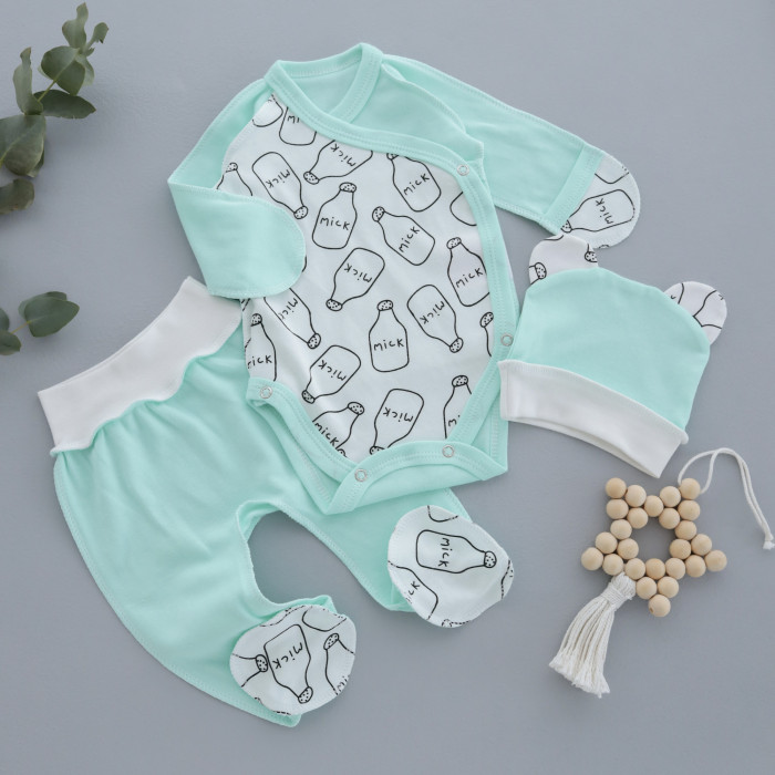 Набір 3в1: Боді, повзунки, шапочка Мілк Мʼятний (Інтерлок) 56 (0-3міс)