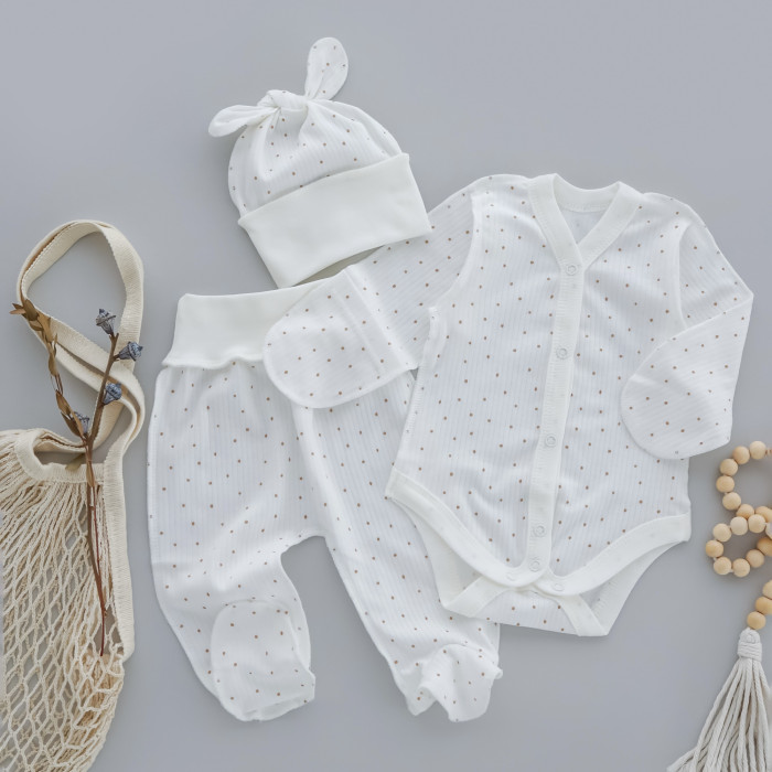 Набір 3в1: Боді, повзунки та шапочка Горошок Бежевий (Рубчик) 56 (0-3міс)