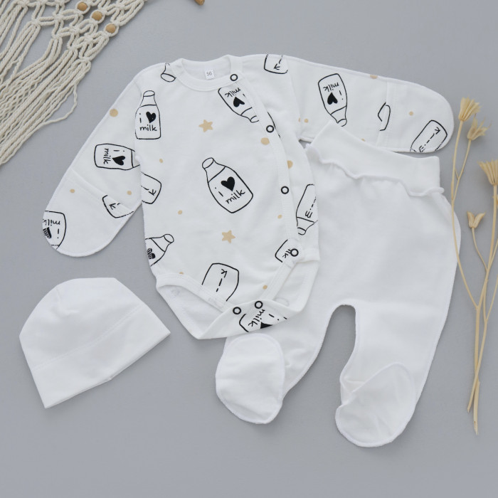 Набір 3в1: Боді, повзунки та шапочка I love Мілк (Футер - з начосом) 56 (0-3міс)