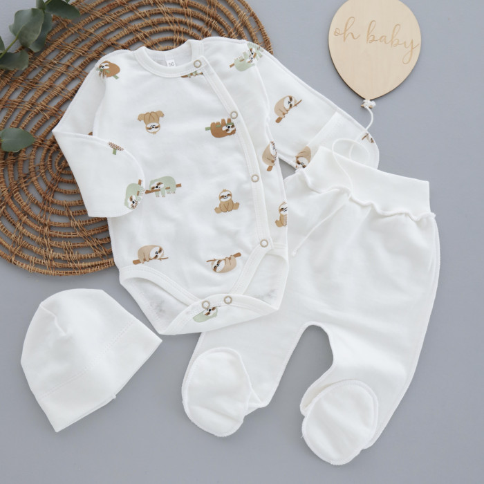 Набір 3в1: Боді, повзунки та шапочка Лінивець (Футер - з начосом) 56 (0-3міс)