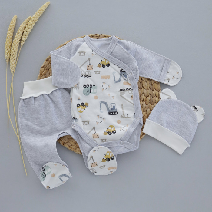 Набір 3в1: Боді, повзунки та шапочка Машинки (Футер - з начосом) 56 (0-3міс)