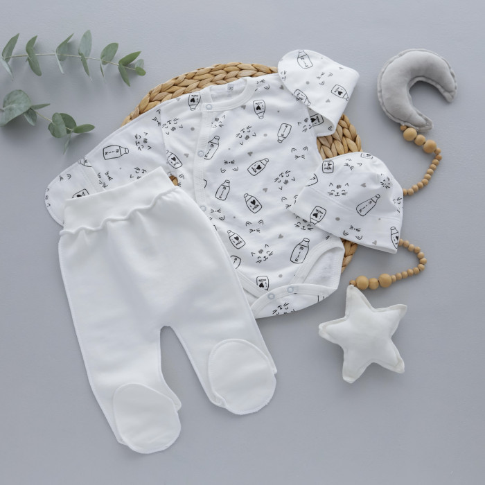 Набір 3в1: Боді, повзунки та шапочка Мілк молочний (Футер - з начосом) 56 (0-3міс)