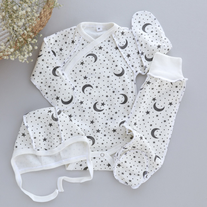 Набір 3в1: Боді, повзунки та шапочка Місяць Білий (Інтерлок) 56 (0-3міс)