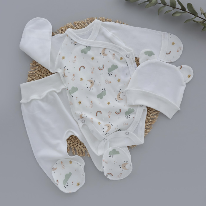 Набір 3в1: Боді, повзунки та шапочка Місяць Молочний (Інтерлок) 56 (0-3міс)