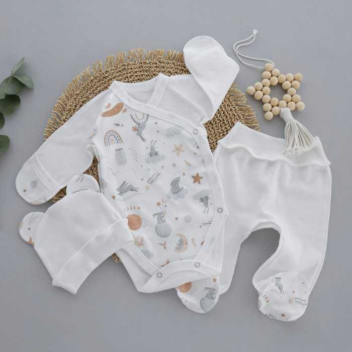 Набір 3в1: Боді, повзунки та шапочка Місяць Зайчик (Інтерлок) 56 (0-3міс)
