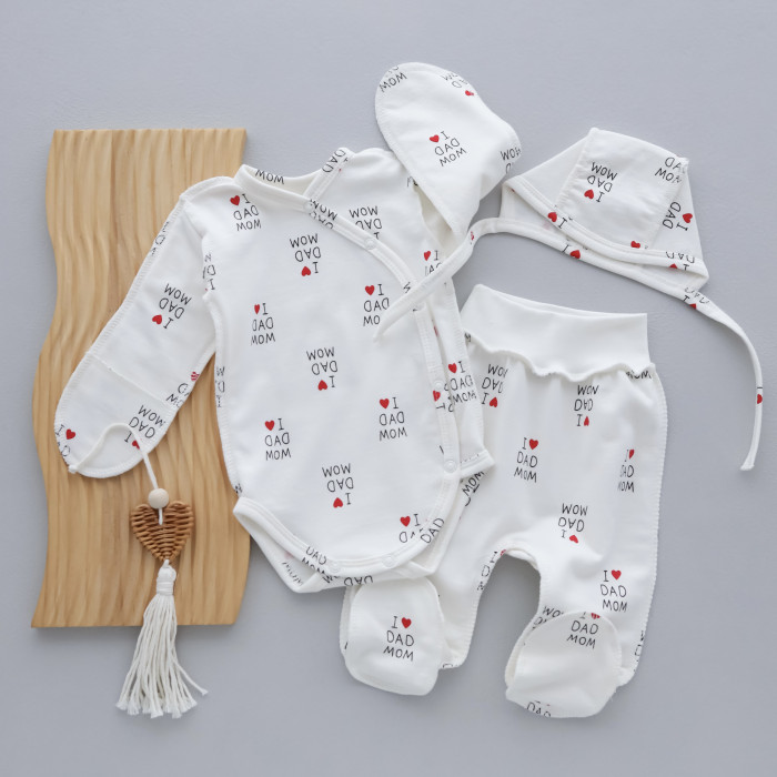 Набір 3в1: Боді, повзунки та шапочка на зав’язках Кохаю мама тато (Футер - з начосом) 62 (3-6міс)