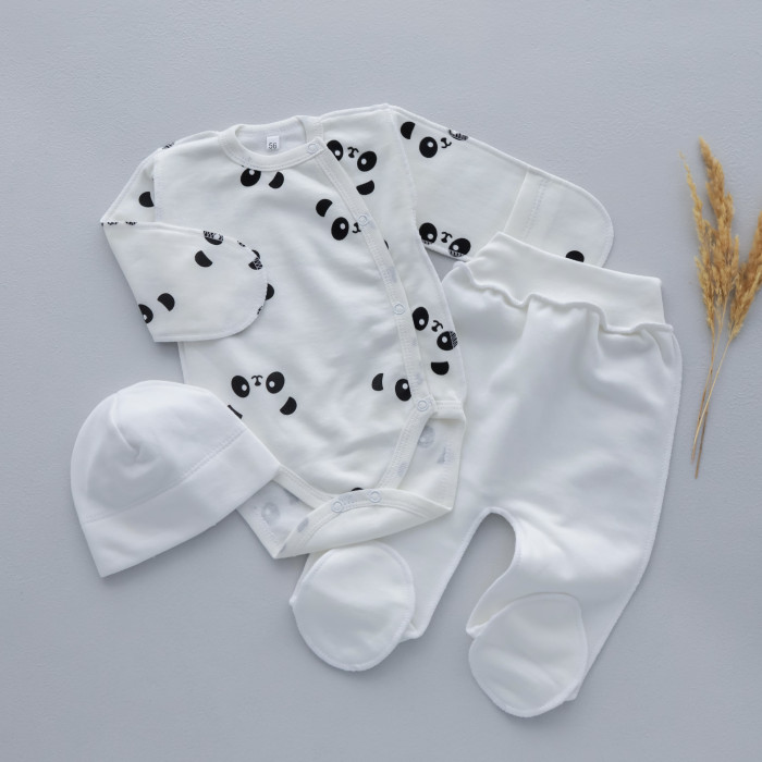 Набір 3в1: Боді, повзунки та шапочка Панди (Футер - з начосом) 56 (0-3міс)