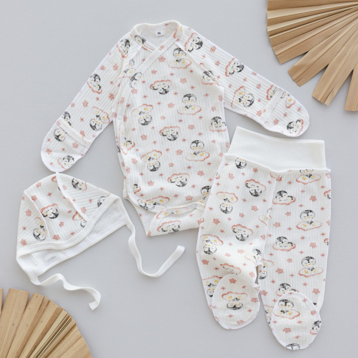 Набір 3в1: Боді, повзунки та шапочка Пінгвіни (рубчик) 56 (0-3міс)