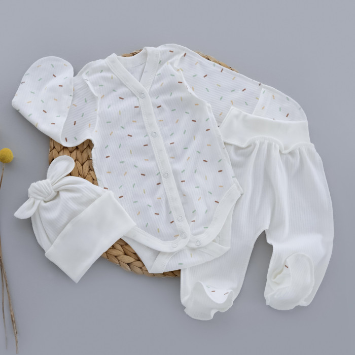 Набір 3в1: Боді, повзунки та шапочка Рис Молочний (Рубчик) 56 (0-3міс)