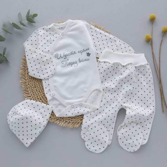 Набір 3в1: Боді, повзунки та шапочка Щастя прямо перед Вами (Футер - з начосом) 56 (0-3міс)