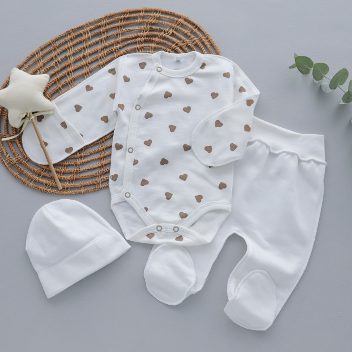 Набір 3в1: Боді, повзунки та шапочка Сердечка Коричневі (Футер - з начосом) 56 (0-3міс)