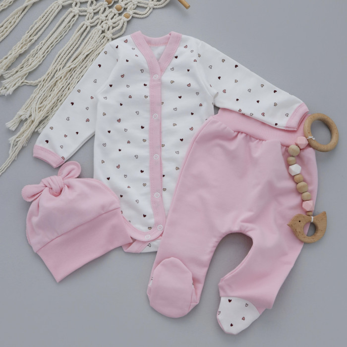 Набір 3в1: Боді, повзунки та шапочка Сердечка Рожевий (Футер - з начосом) 62 (3-6міс)