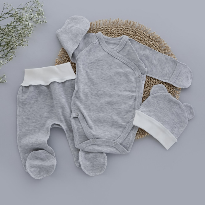 Набір 3в1: Боді, повзунки та шапочка Сірий (Футер - з начосом) 56 (0-3міс)