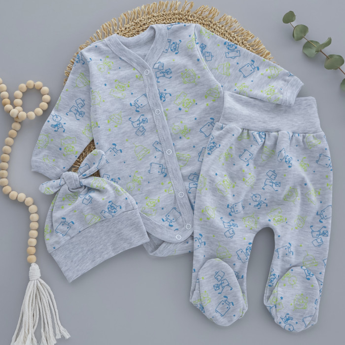 Набір 3в1: Боді, повзунки та шапочка Сірий з малюнком (Інтерлок) 62 (3-6міс)