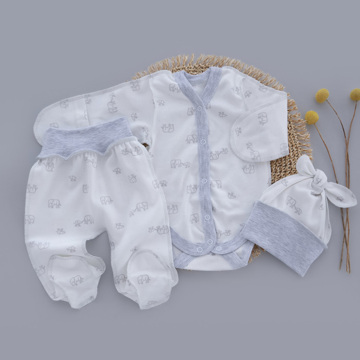 Набір 3в1: Боді, повзунки та шапочка Слоники Сірий (Інтерлок) 56 (0-3міс)