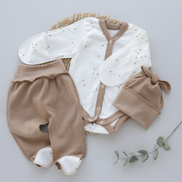 Набір 3в1: Боді, повзунки та шапочка Трикутники Бежевий (Рубчик) 56 (0-3міс)